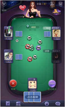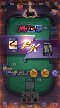3、游戏开始后,压上底注,从庄家下家开始发牌(第一局由系统随机)